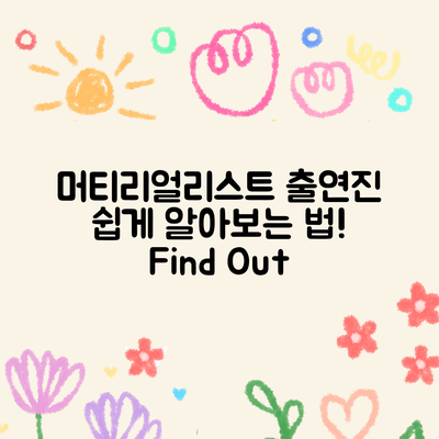 이와 같은 방법을 활용하면, 출연진에 대한 정보뿐만 아니라 그들의 연기 스타일이나 필모그래피까지 폭넓게 이해할 수 있습니다. 영화 머티리얼리스트의 출연진을 보다 쉽게 알아보는 방법을 통해, 여러분도 새로운 영화 경험을 풍부하게 할 수 있습니다.